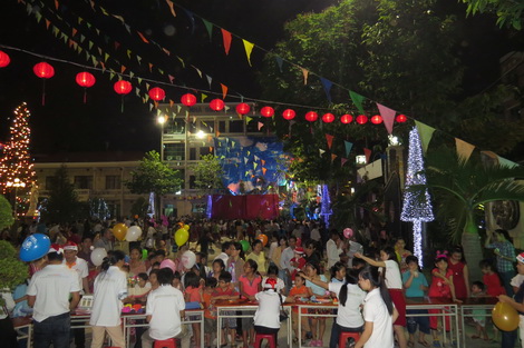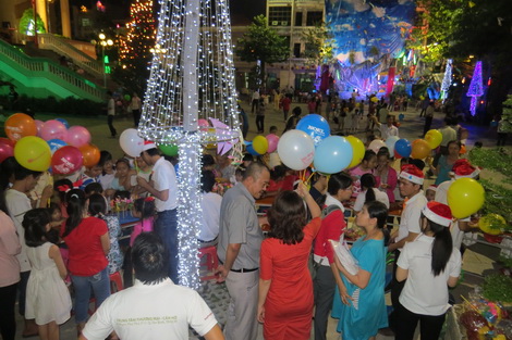 Giữa không khí nô nức, hòa vào những hoạt cảnh, khúc ca của Giáo xứ, đêm giáng sinh càng trở nên ý nghĩa, ấm áp, tươi vui hơn khi trên tay các em nhỏ là chiếc bong bóng Noel, là chú hạc giấy hay hoa giấy, là anh tò he hình ông già Noel, siêu nhân, Doremon hay hoa hồng cho các bé gái.
