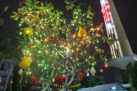 Ngay từ buổi chiều 24/12, những chiếc lồng đèn rực rỡ sắc màu vàng, đỏ đã được treo cao trong khuôn viên Giáo xứ, chào đón một đêm giáng sinh an lành, tràn ngập niềm vui.