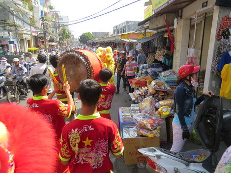 Tiếng trống tưng bừng, rộn rã, đoàn lân vui tươi nhảy múa, ông Địa tận tình trao tay từng phong bì lì xì đến các tiểu thương thay cho lời chúc phúc một năm mới nhiều may mắn và thành công mỹ mãn.