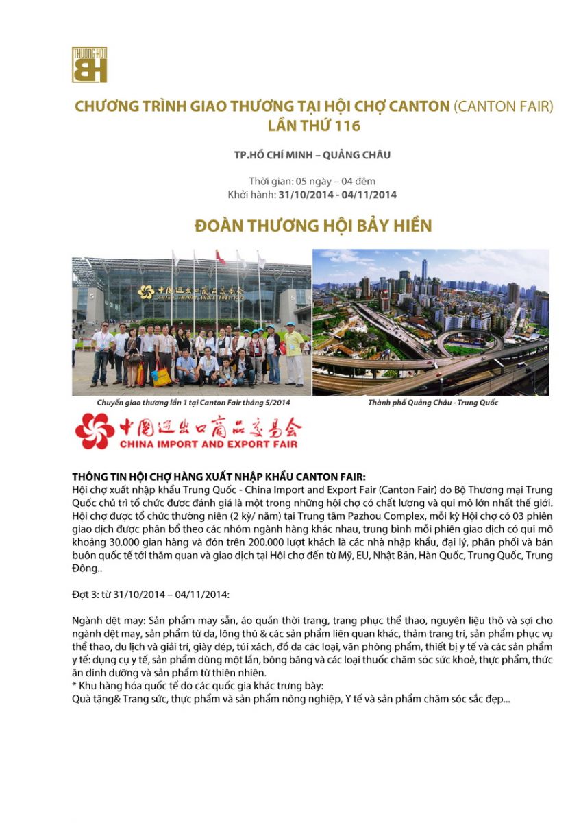 Chương trình giao thương tại hội chợ Canton (Canton Fair) lần thứ 116
