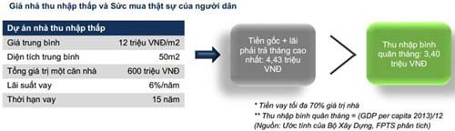 "Tuy nhiên, với giá một căn nhà ở xã hội khoảng 600 triệu, làm một phép tính đơn giản cũng có thể thấy mức giá này vẫn cao hơn nhiều so với sức mua bởi thu nhập bình quân đầu người của Việt Nam vẫn còn quá thấp", báo cáo cho biết.