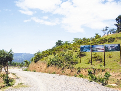 Sau một hồi hỏi đường, thấp thỏm đi qua cầu Đồng Chúi chỉ rộng hơn chút xíu cho với chiều ngang chiếc xe 5 chỗ, chúng tôi có mặt tại dự án Sunset Villas & Resort tại xã Tân Vinh, huyện Lương Sơn (Hoà Bình).
